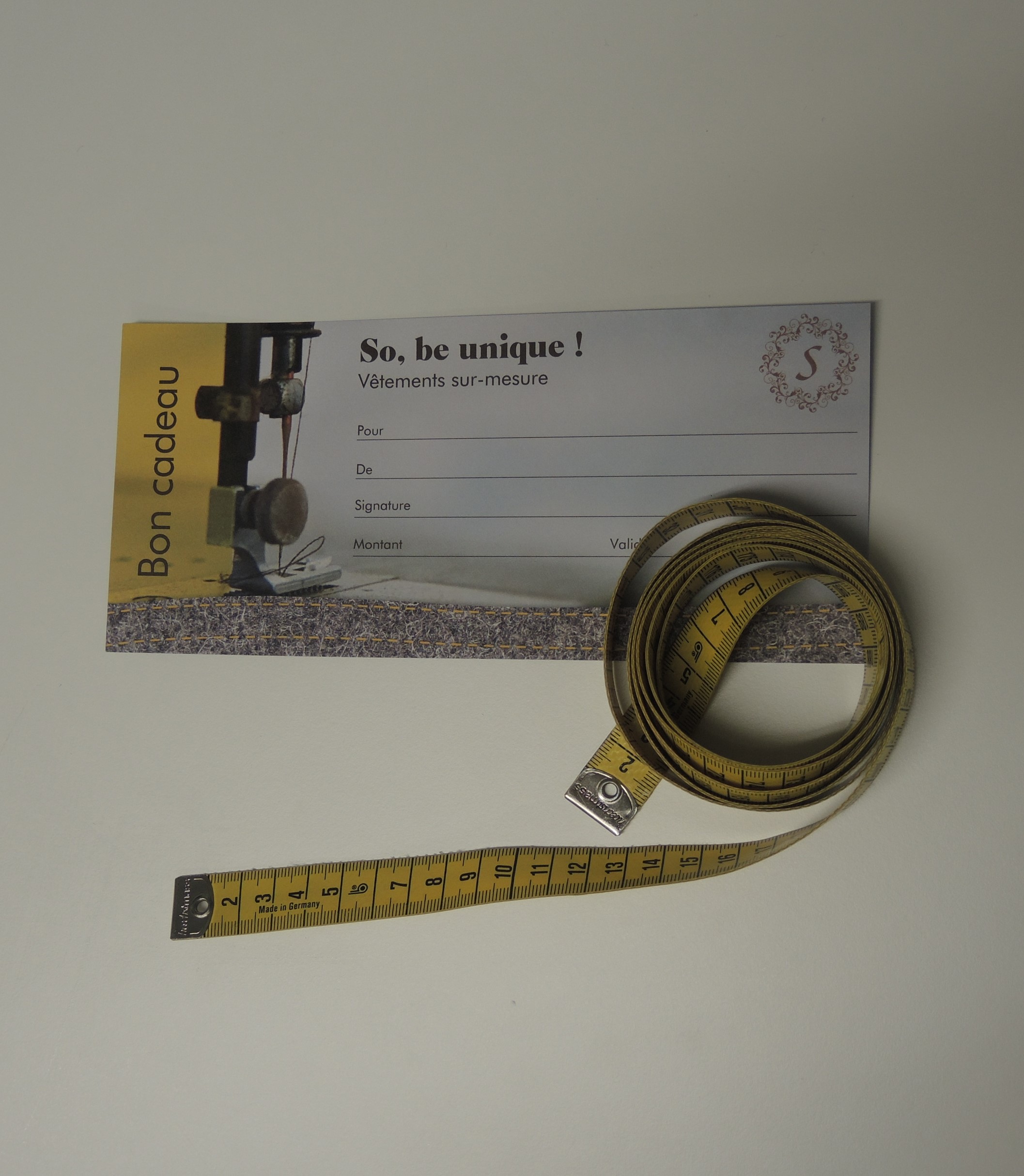 Déterminez le montant du bon que vous souhaitez offrir . Envoyez un mail à info@vetementsurmesure.ch en indiquant votre adresse ou celle du destinataire. Le bon vous sera envoyé dès réception du montant désiré.